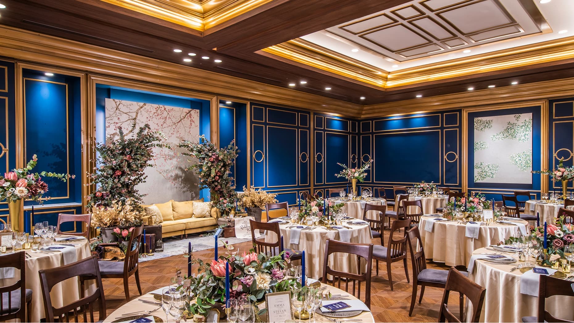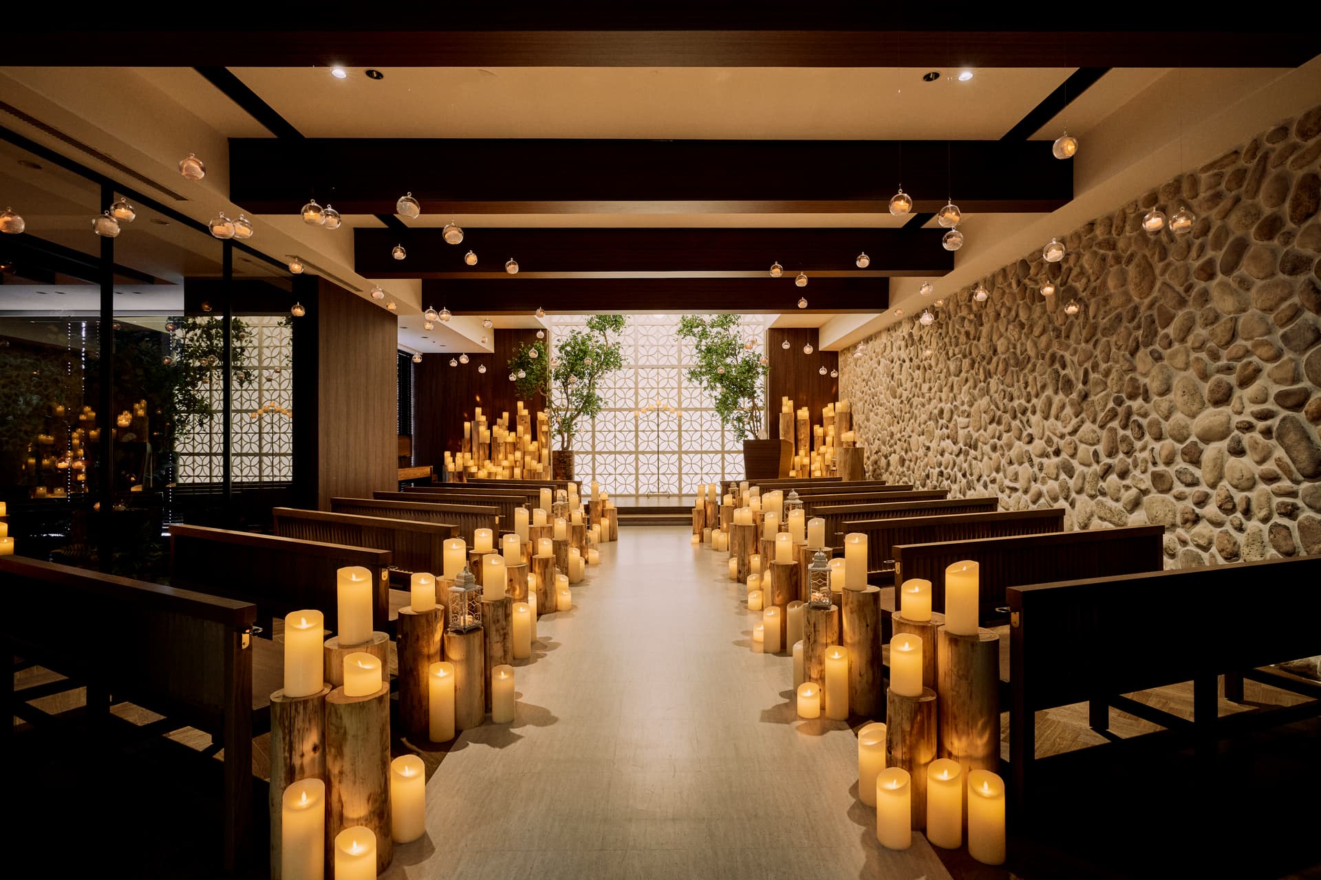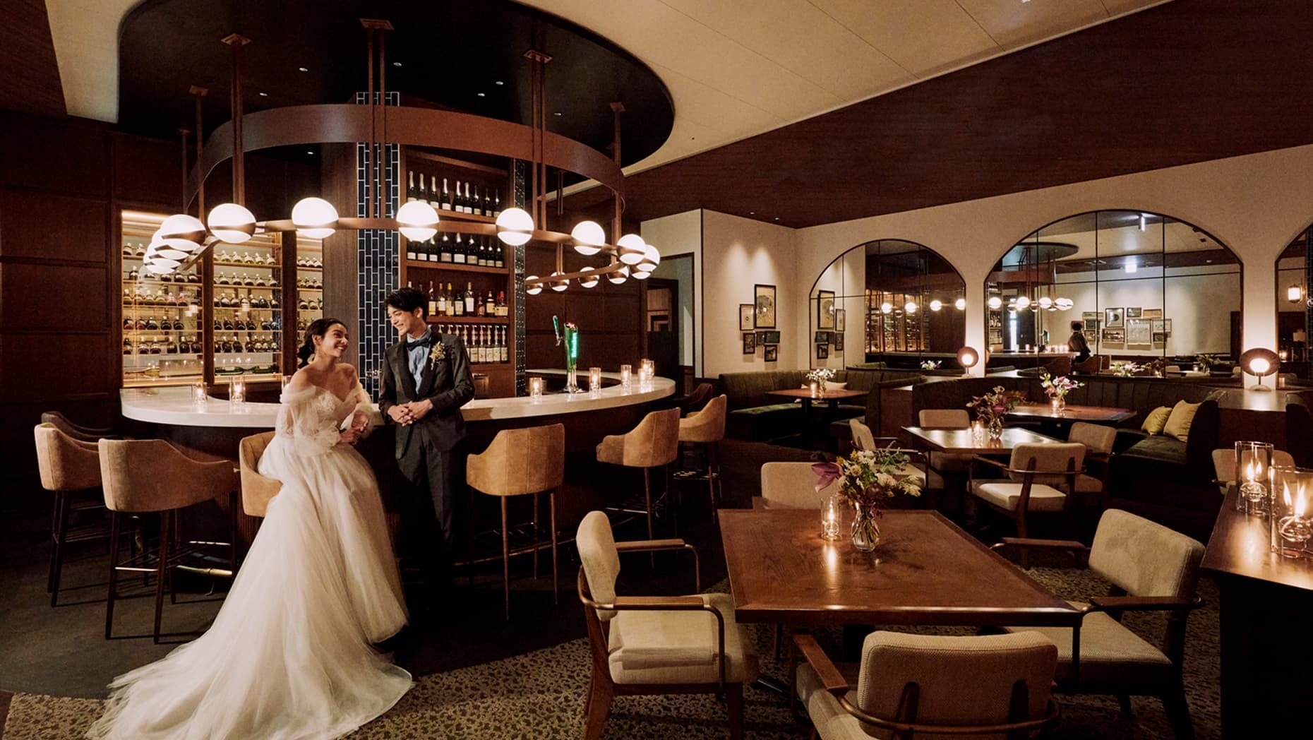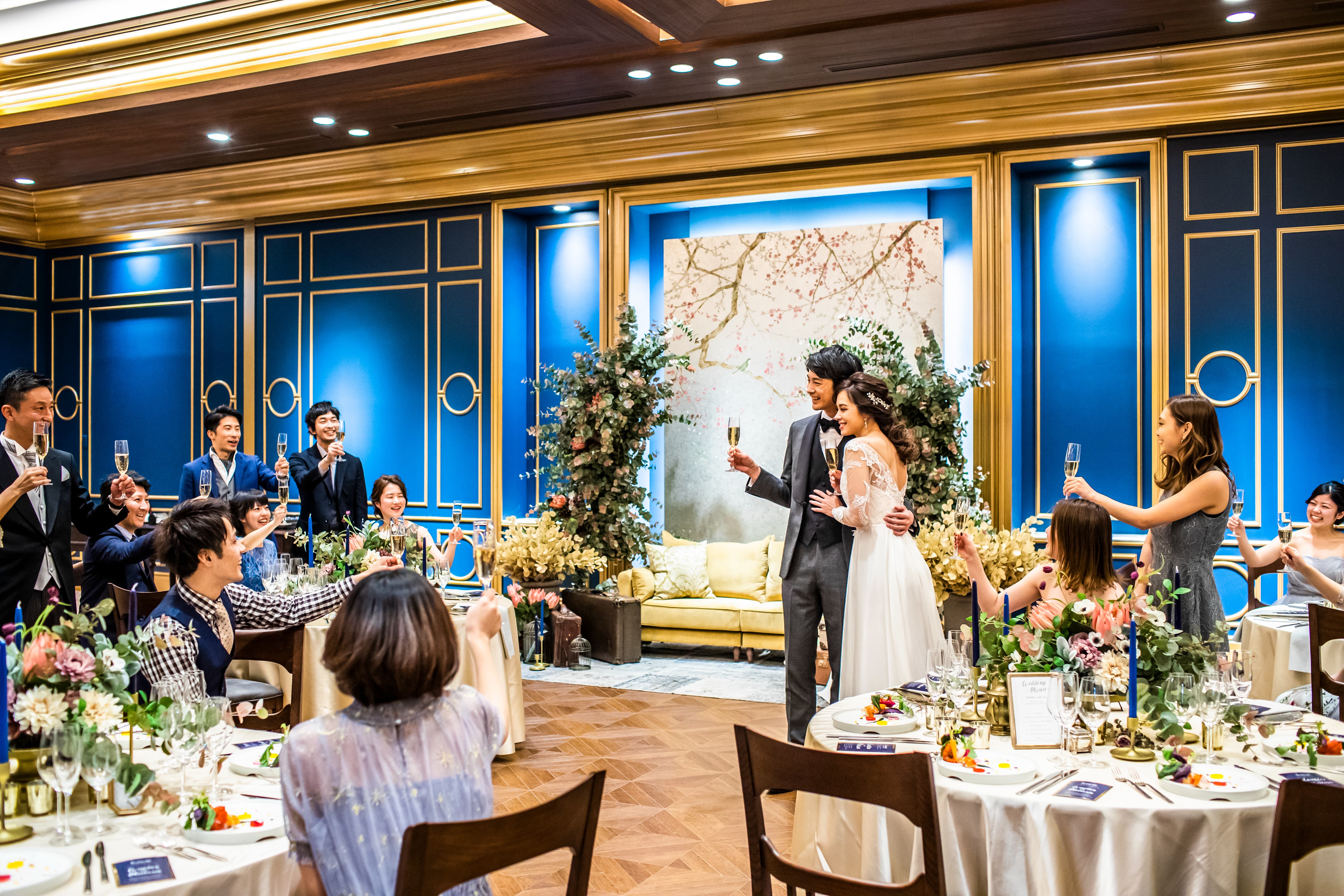 レイアウトもコーディネートも自由自在に、ふたりの物語を彩る一日を。ゲストとの距離感が心地よく調和する、中心的な空間です。